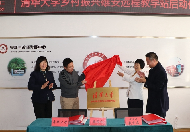 啟動(dòng)儀式上,清華大學(xué)繼續(xù)教育學(xué)院黨委副書記張文雪與安新縣教育局局長王宗政代表合作雙方簽約。清華大學(xué)繼續(xù)教育學(xué)院院長劉震、黨委副書記張文雪與雄安新區(qū)公共服務(wù)局副局長夏韶華、安新縣政府副縣長郝順清共同為“清華大學(xué)鄉(xiāng)村振興雄安遠(yuǎn)程教學(xué)站”揭牌。