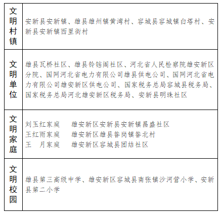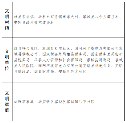 河北省文明村鎮(zhèn)、文明單位、文明家庭保留稱號(hào)名單(雄安新區(qū)部分)