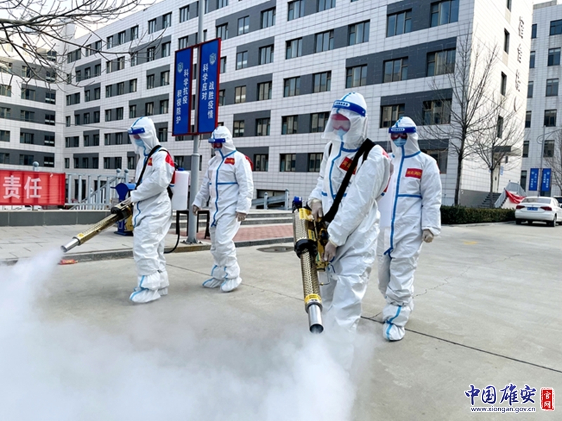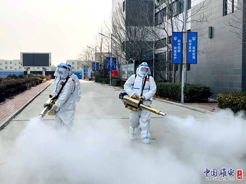 安新縣消防救援大隊隊員正在進行消殺作業(yè)。中國雄安官網發(fā)