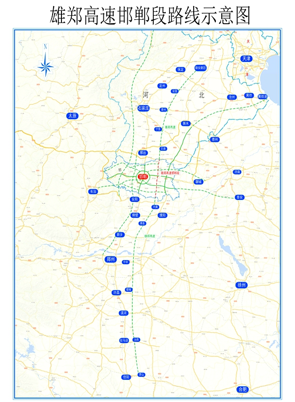 雄安新區(qū)至鄭州高速公路位于京港澳和大廣高速公路之間,北起雄安新區(qū),南至冀豫界后,向南和河南省規(guī)劃的安陽至羅山高速公路對(duì)接,形成雄安通達(dá)武漢的高速大通道。