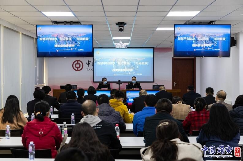 活動(dòng)現(xiàn)場,專業(yè)講師向參加宣講活動(dòng)的50余家進(jìn)出口企業(yè)進(jìn)行了進(jìn)口“船邊直提”、出口“抵港直裝”、“集疏港智慧平臺(tái)”應(yīng)用場景講解。實(shí)施“智慧海關(guān)”監(jiān)管模式,將進(jìn)一步深化冀津海關(guān)監(jiān)管協(xié)作,提升跨境貿(mào)易便利化水平,為打造雄安新區(qū)最便利出??谧鞒龊jP(guān)貢獻(xiàn)。該項(xiàng)舉措實(shí)施后,雄安進(jìn)出口企業(yè)在天津港實(shí)貨通關(guān)效率將進(jìn)一步提升,預(yù)期進(jìn)一步壓縮港口物流時(shí)間15%,車貨匹配時(shí)間進(jìn)一步加快,單箱物流成本也將進(jìn)一步降低。