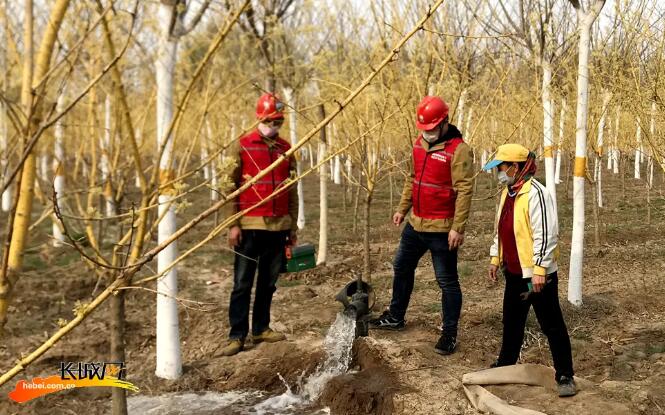 共產(chǎn)黨員服務隊巡視檢修千年秀林灌溉用電設(shè)備。冀洋 圖