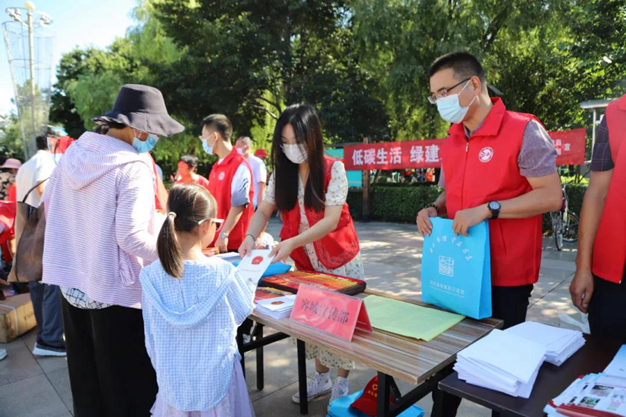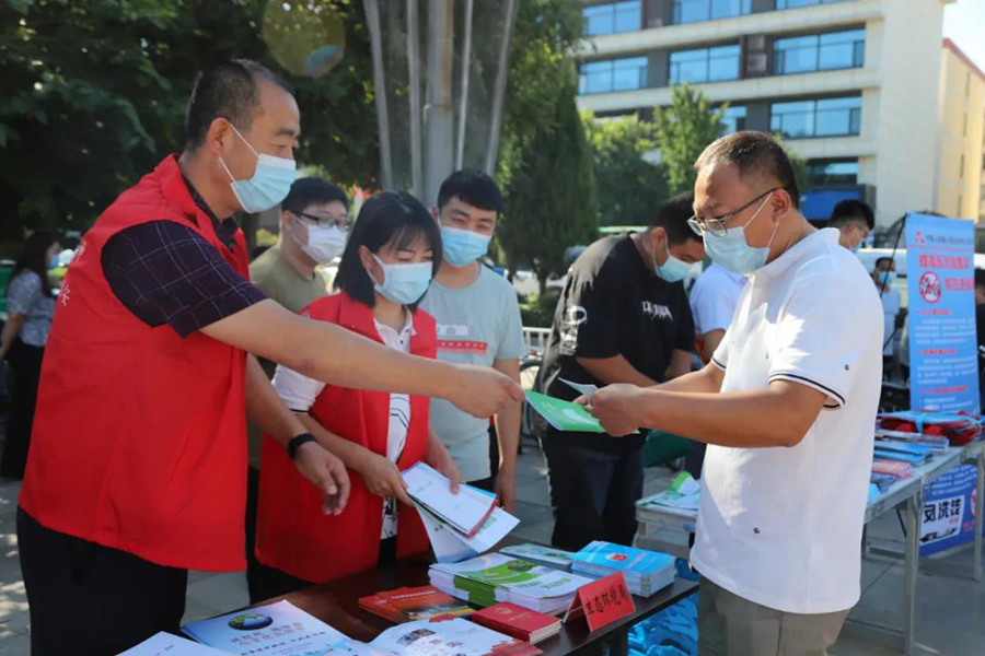 普法宣傳志愿者深入群眾宣傳《河北雄安新區(qū)條例》。