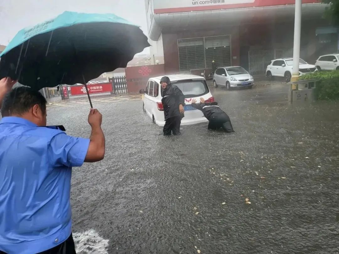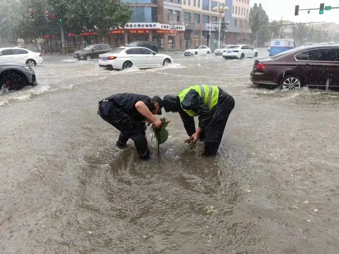 暴雨中,執(zhí)勤民輔警縱然全身濕透,依然堅守在各自崗位,及時排查積水隱患、推移拋錨汽車、疏導分流車輛、幫助受困群眾。在積水嚴重位置安排專人執(zhí)勤,發(fā)現(xiàn)積水影響交通通行的,實施交通管制,提醒過往車輛安全駕駛,確保人民群眾生命財產安全。