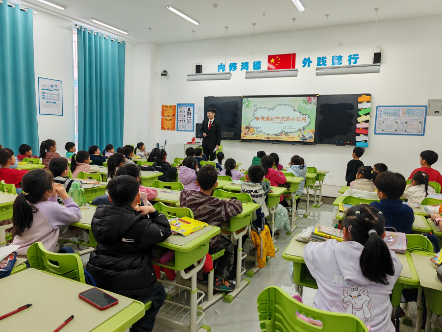 干警運(yùn)用通俗易懂的語(yǔ)言、生動(dòng)有趣的課件,以案講法、以案學(xué)法,將法律條文變成活潑、形象的小故事,吸引他們走進(jìn)法律世界。并在現(xiàn)場(chǎng)傳授防欺凌等安全防范技能,指導(dǎo)同學(xué)們?cè)谟龅骄o急情況時(shí)運(yùn)用法律手段進(jìn)行自我保護(hù)。