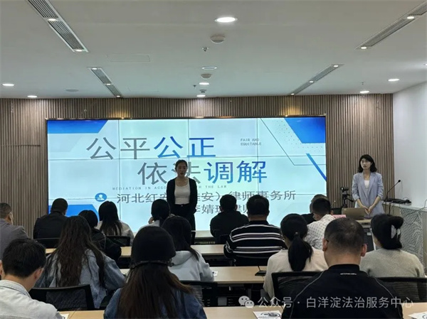 為進(jìn)一步增強(qiáng)容東片區(qū)社會(huì)治理法治化水平,提升社區(qū)骨干調(diào)解能力和業(yè)務(wù)能力,河北雄安新區(qū)白洋淀法治服務(wù)中心在容東片區(qū)開(kāi)展了人民調(diào)解技能培訓(xùn),邀請(qǐng)河北紅安(雄安)律師事務(wù)所李婧璇律師普法授課。