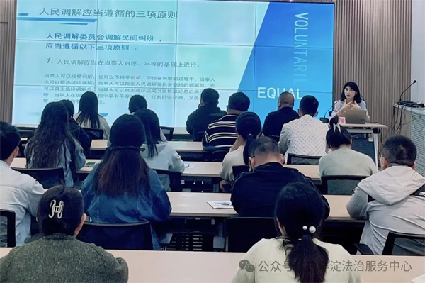2024年5月7日,首場(chǎng)培訓(xùn)于望淀社區(qū)黨群服務(wù)中心開(kāi)展,培訓(xùn)對(duì)象為東西里社區(qū)、胡村社區(qū)及望淀社區(qū)書(shū)記、副書(shū)記、社工、樓門(mén)長(zhǎng)等參與社區(qū)調(diào)解工作的骨干成員。