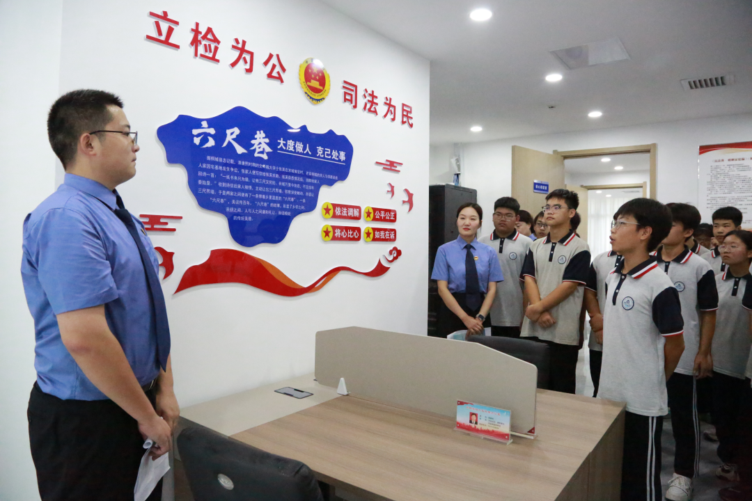 “同學(xué)們,高鐵樞紐片區(qū)檢察服務(wù)中心以服務(wù)征遷群眾為宗旨,它是集家庭教育指導(dǎo)、心理疏導(dǎo)、回訪幫教、矛盾調(diào)處、法治宣傳等為一體的綜合服務(wù)中心……現(xiàn)在大家看到的是我們專門為未成年人設(shè)置的家庭教育指導(dǎo)室和心理疏導(dǎo)室,在這里可以為未成年人及親屬提供全方位的家庭教育指導(dǎo)和心理疏導(dǎo)、心理測(cè)評(píng)、行為矯正等法律服務(wù)”。在干警講解下,學(xué)生們了解了檢察服務(wù)中心的功能作用,感受到檢察機(jī)關(guān)做實(shí)未成年人保護(hù)工作的司法溫度。