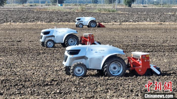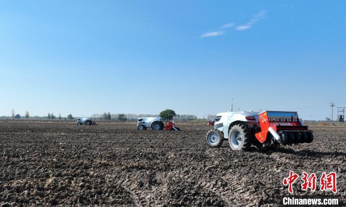 10月22日,河北雄安新區(qū)安新縣端村鎮(zhèn)關(guān)城二村一農(nóng)田內(nèi),幾臺“鴻鵠T70”電動智能拖拉機(jī)正在進(jìn)行秋播作業(yè)。據(jù)了解,今年雄安新區(qū)公共服務(wù)局通過實施“雄安新區(qū)農(nóng)業(yè)全產(chǎn)業(yè)鏈數(shù)字化轉(zhuǎn)型示范應(yīng)用場景項目”,重點打造“數(shù)字決策+無人農(nóng)機(jī)”的無人農(nóng)場示范場景,依托國家數(shù)字農(nóng)業(yè)區(qū)域(京津冀)創(chuàng)新分中心與中國科學(xué)院雄安創(chuàng)新研究院(籌)第三代新能源智能農(nóng)機(jī)技術(shù),在雄安新區(qū)實施5000畝農(nóng)田“耕、種、管、收”全鏈條環(huán)節(jié)無人化示范作業(yè)。