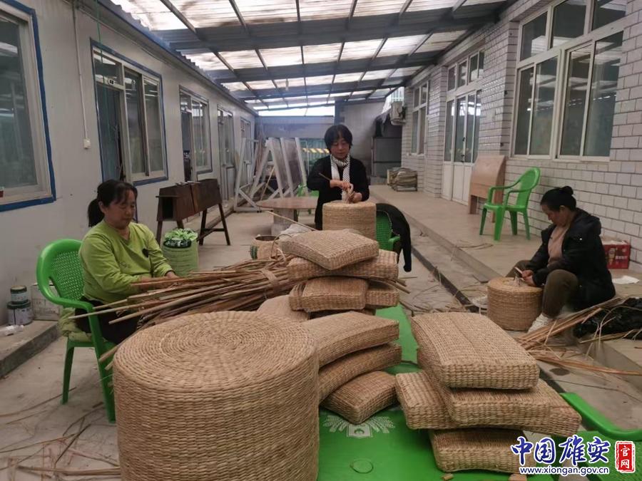 安新縣趙北口鎮(zhèn)村民正在編制蒲草工藝品。安新縣趙北口鎮(zhèn)供圖