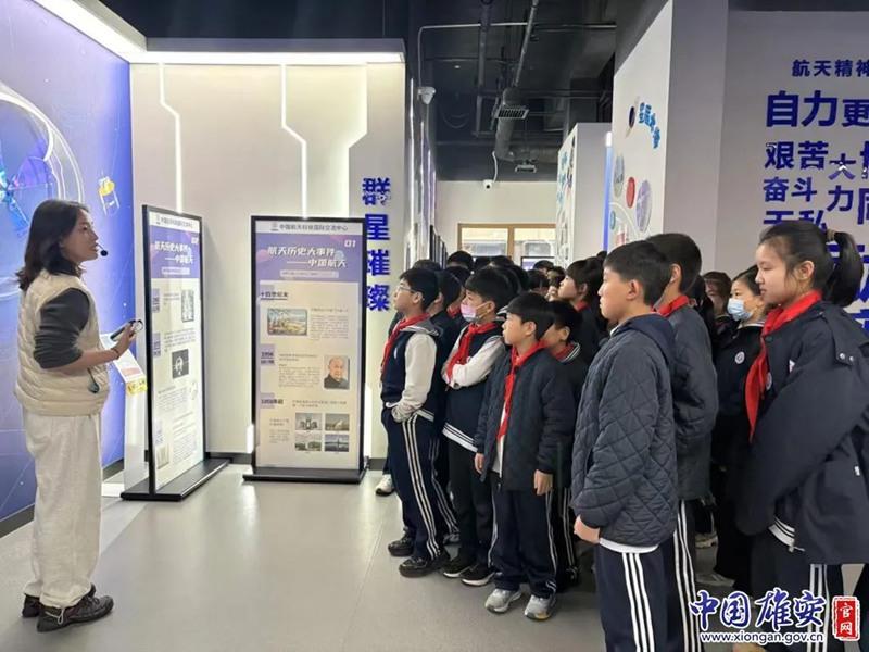 新區(qū)中小學(xué)師生在航天科普館前合影。中國(guó)雄安官網(wǎng)發(fā)