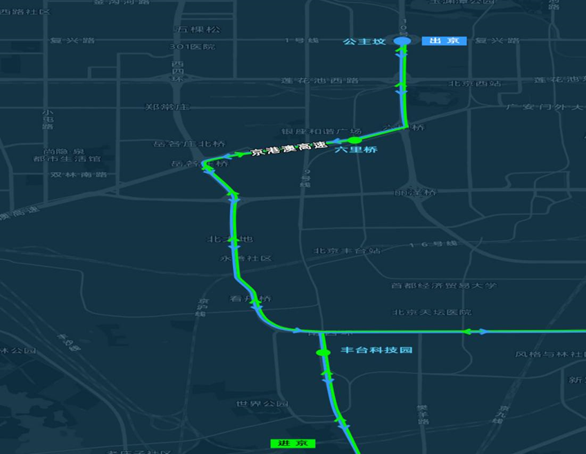 京雄通勤定制快巴線路北京端線路走向及上下客點位圖
