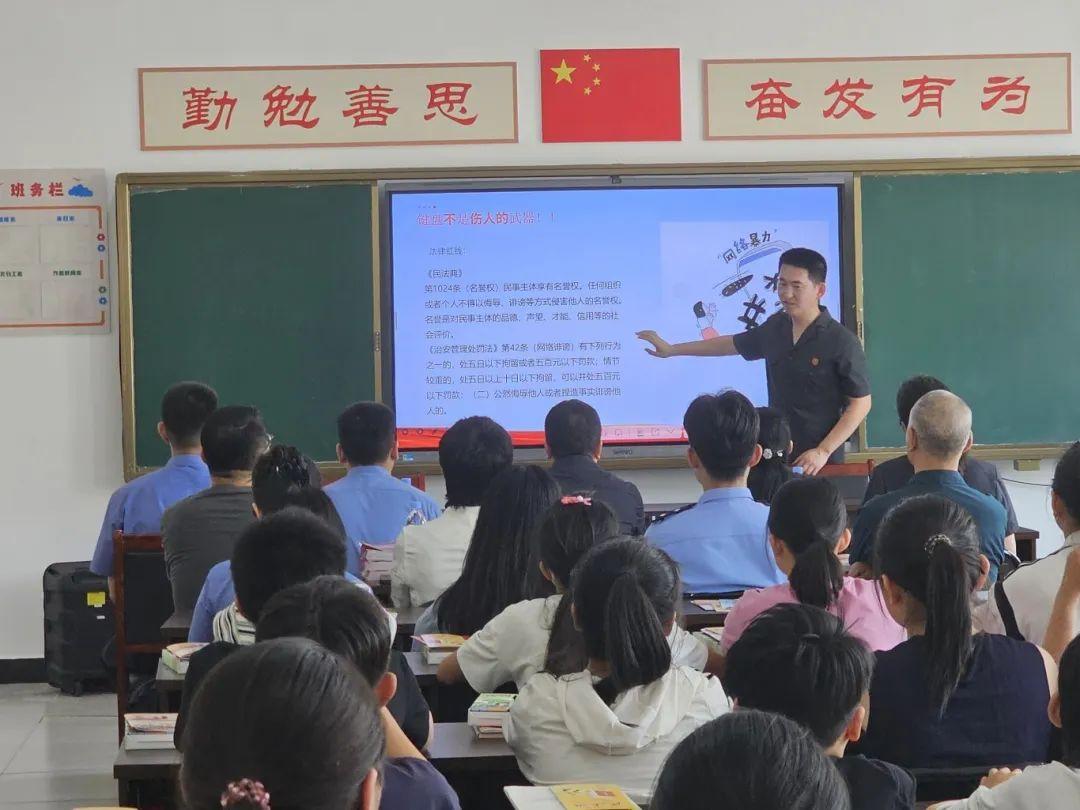 活動中,雄安站樞紐片區(qū)人民法庭法官助理、法治副校長肖陽以通俗易懂的語言,以案說法的形式,從校園欺凌、網(wǎng)絡(luò)暴力、人身權(quán)利、未成年人犯罪等內(nèi)容切入,結(jié)合《中華人民共和國民法典》《中華人民共和國未成年人保護法》《中華人民共和國預(yù)防未成年人犯罪法》以及《中華人民共和國刑法》中保護未成年人權(quán)益和未成年人犯罪的相關(guān)法律法規(guī),深入淺出剖析了校園欺凌的危害性和法律后果,教育大家不做欺凌者、不做受害者、也不做旁觀者,自覺抵制校園欺凌,勇敢拿起法律武器保護自己。活動尾聲,法院干警們還為學(xué)生們發(fā)放了精心準(zhǔn)備的民法典、未成年人保護法等宣傳資料,希望同學(xué)們和家長們課后能繼續(xù)深入學(xué)習(xí)法律知識。