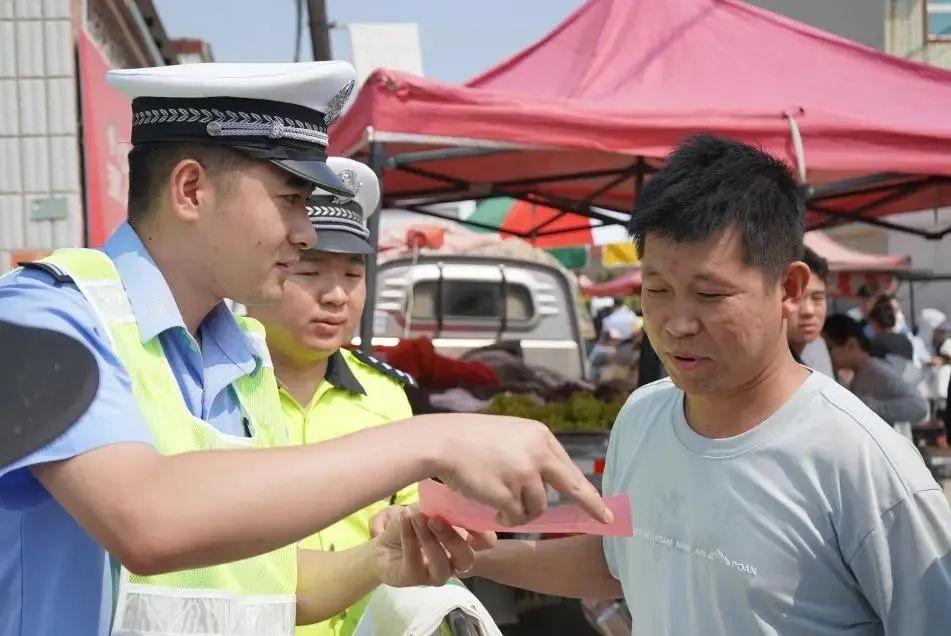 集市墻面、攤位旁,民警認(rèn)真張貼交通安全海報(bào),“向交通違法說不”等標(biāo)語醒目亮眼。把交通安全知識(shí)“貼”進(jìn)生活場景,讓往來群眾隨時(shí)能看到,潛移默化提升安全意識(shí)。