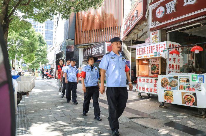 夜幕降臨,數(shù)公里外的紅街夜市人聲鼎沸,金紅社區(qū)“紅袖標(biāo)志愿巡邏隊”隊員王成正穿梭于攤位間,仔細檢查商戶的煤氣罐閥門和電路線路?!凹t街夜市有600余家商戶,夜間食客多,醉酒糾紛、噪音擾民、用電用氣安全都是重點。”作為匯昌物業(yè)秩序隊長、巡邏隊“元老”,王成對夜市安全隱患了如指掌。