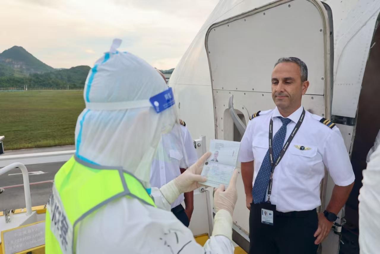 貨機剛落地,專項查驗小組便立即攜帶查驗設備快速抵達指定停機位,在嚴格遵守查驗流程的前提下,迅速開展機組人員人證對照,同時進行貨機清艙檢查等系列工作,僅用12分鐘便辦結(jié)邊防檢查全部通關流程,為后續(xù)檢疫消殺、轉(zhuǎn)運工作節(jié)省寶貴時間,最大限度降低了種豬在途應激風險。