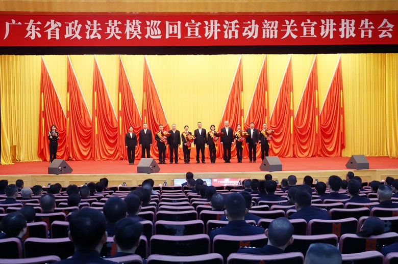韶關(guān)市委常委、政法委書記李澤航在致辭中表示,各位政法英模圍繞掃黑除惡專項斗爭中的鐵軍本色、堅守高墻做好罪犯教育轉(zhuǎn)化工作、在涉外審判中胸懷“國之大者”、以檢察匠心踐行為民初心、在禁毒戰(zhàn)線上浴血奮戰(zhàn)等主題,分享了先進集體故事、個人心路歷程,其事跡感人、形象可親、品格可敬,引發(fā)與會人員強烈共鳴。全韶關(guān)市政法機關(guān)要學習英模,汲取奮進力量,打造一支讓黨放心、人民群眾滿意的高素質(zhì)政法隊伍,推進更高水平的平安韶關(guān)、法治韶關(guān)建設。