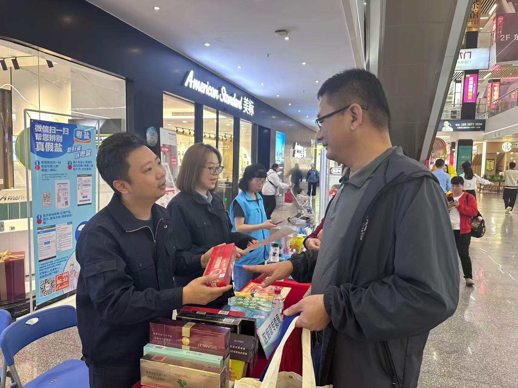 活動現(xiàn)場,天河區(qū)煙草專賣局的工作人員紛紛化身“消費安全衛(wèi)士”,熱情且耐心地為過往群眾講解卷煙真?zhèn)舞b別技巧。工作人員手持真、假煙樣品,細致對比,從包裝印刷的清晰度、煙絲色澤的差異、口感香氣的不同等多個維度,用通俗易懂的語言傳授辨別方法,幫助群眾練就一雙識別真假煙的“火眼金睛”。