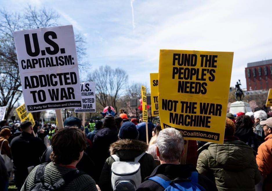 當日,數百名反戰(zhàn)人士在美國首都華盛頓市白宮北側拉斐特廣場舉行集會,敦促美國政府反思伊拉克戰(zhàn)爭,呼吁美國關?!皯?zhàn)爭機器”。