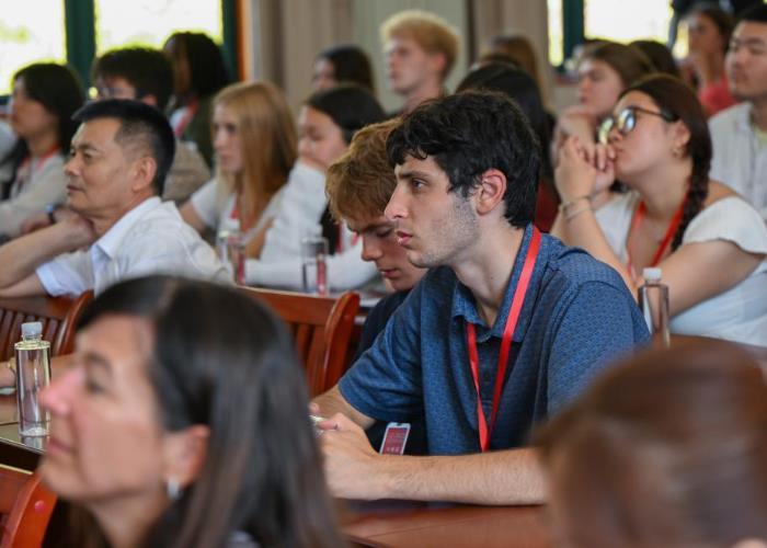 7月28日,在湖北省黃岡市紅安縣,美國(guó)飛虎隊(duì)夏令營(yíng)代表團(tuán)成員觀看紀(jì)錄片《飛虎情緣》。