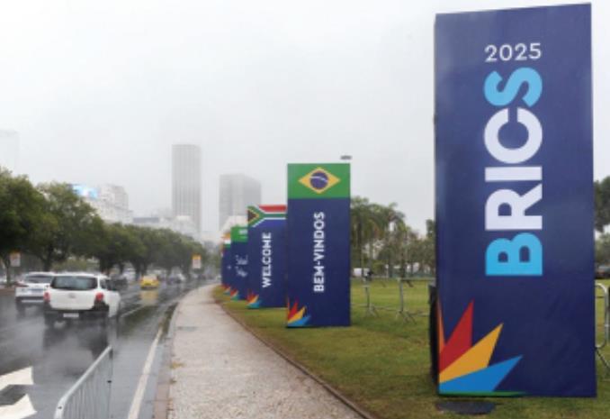 圖為7月3日在巴西里約熱內(nèi)盧拍攝的金磚國家領導人第十七次會晤歡迎標語牌。 新華社發(fā)
