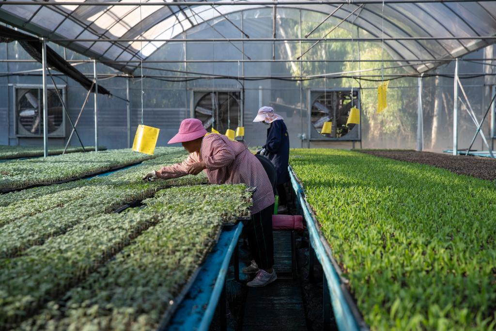 工作人員在云南省元謀縣的育苗工廠(chǎng)大棚內(nèi)進(jìn)行育苗工作。受訪(fǎng)者供圖。