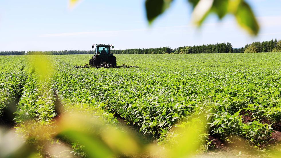 在北大荒集團(tuán)黑龍江紅星農(nóng)場(chǎng)第一管理區(qū)有機(jī)大豆田里,搭載北斗導(dǎo)航系統(tǒng)的大馬力機(jī)車(chē)開(kāi)展有機(jī)大豆二次中耕作業(yè)(2025年7月7日攝)。新華社發(fā)(侯越攝)