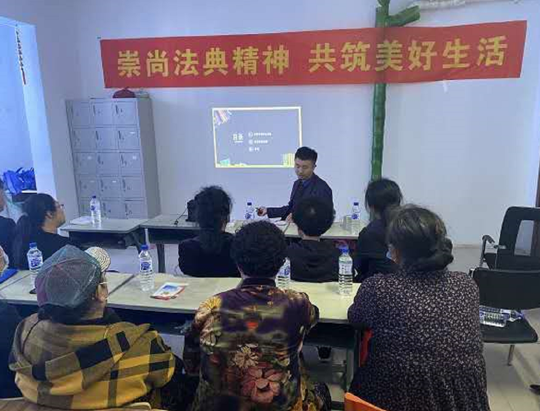 活動中,邀請吉林邦贏律師事務所王海濤律師為北七條社區(qū)居民講授“民法典概述及業(yè)主的建筑物區(qū)分所有權”相關知識。律師重點介紹了民法典編撰的重大意義,結合居民生活實際列舉了鮮活案例,耐心細致地解答了業(yè)主的建筑物區(qū)分所有權問題,現(xiàn)場氛圍濃厚。