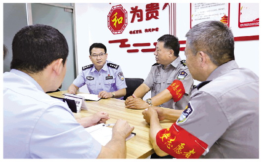圖為遼寧省沈陽市公安局和平分局中華派出所副所長兼社區(qū)民警張登林與平安志愿者開展座談。法治日報全媒體記者 韓宇 攝
