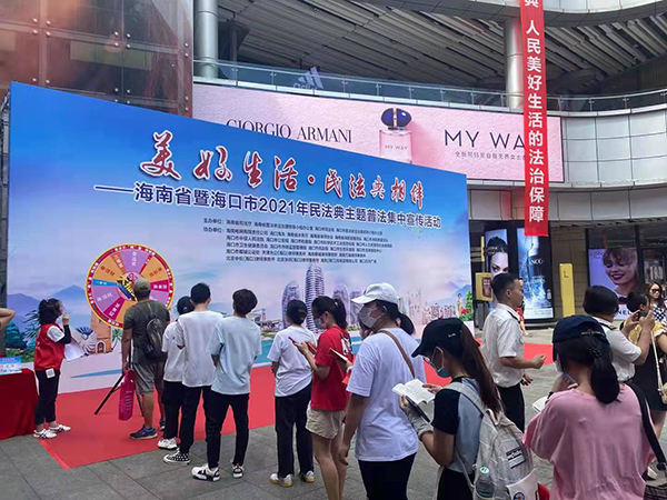 5月28日上午,海南省普治辦、省司法廳聯(lián)合??谑衅罩无k、??谑兴痉ň?、海南電網(wǎng)有限責(zé)任公司、??诤jP(guān)、省水務(wù)廳、省律師協(xié)會(huì)、省消防救援總隊(duì)在??谑腥赵聫V場(chǎng)開展民法典集中普法宣傳活動(dòng)。27家省直和??谑兄眴挝辉诨顒?dòng)現(xiàn)場(chǎng)擺放民法典展板、設(shè)置法律服務(wù)咨詢臺(tái),為群眾提供法律咨詢服務(wù),免費(fèi)發(fā)放宣傳資料。當(dāng)天,全省18個(gè)市縣還同步組織開展開展民法典集中普法宣傳和法律咨詢活動(dòng)。