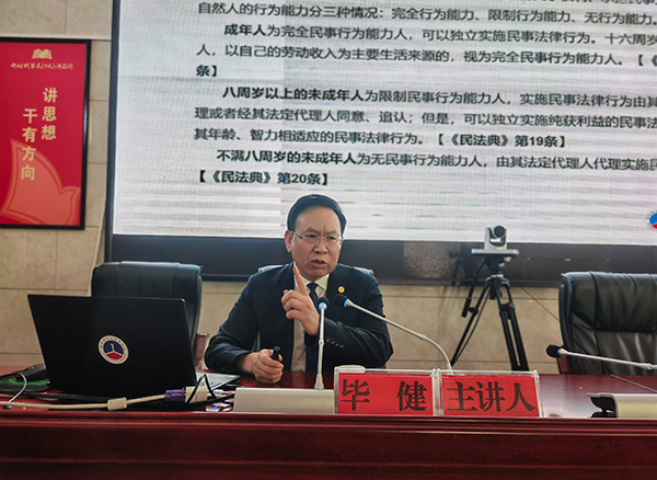 在此次培訓會上,中國企聯(lián)維權(quán)工委委員、貴州省人民政府立法咨詢專家畢健為參會人員作了以“民法典中招商引資合同法、公司法的運用及案例解析”為主題的《民法典》學習輔導暨法治講座。畢健從《民法典》之法律概念和法律意識、《民法典》之制定歷程和重要意義、《民法典》之主要內(nèi)容和亮點特色、《民法典》之與年齡相關(guān)的自然人制度、《民法典》之法人制度、《民法典》之與鄉(xiāng)村振興相關(guān)制度等六個方面進行深入淺出的講解,特別針對政府招商引資合同存在的風險與防范作了詳細的分析講解。參會人員紛紛表示獲益匪淺,希望政府多組織這樣的培訓學習。