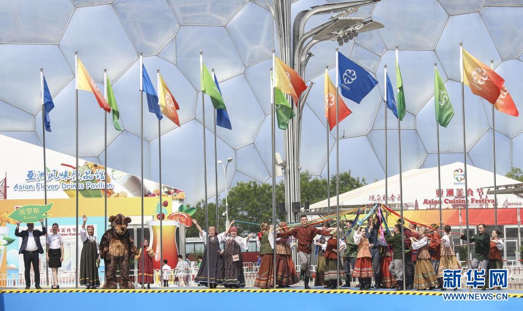 來(lái)自俄羅斯的演員在北京奧林匹克公園舉行的亞洲文明巡游活動(dòng)中表演(2019年5月16日攝)。新華社記者 殷剛 攝
