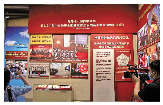 2021年6月25日,媒體記者在中國共產黨歷史展覽館拍攝法治建設成就相關展板。 法治日報全媒體記者 王建軍 攝