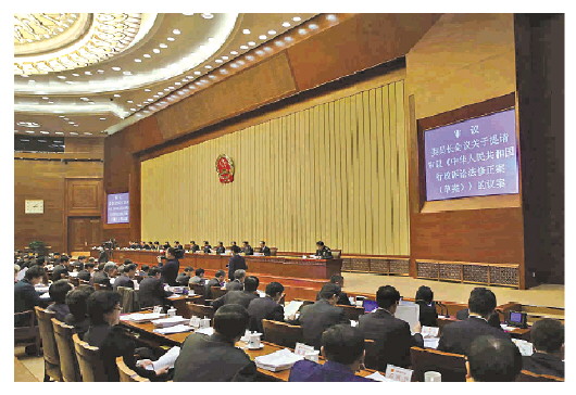 2013年12月23日,十二屆全國人大常委會第六次會議舉行第一次全體會議,審議行政訴訟法修正案草案。 (資料圖片)