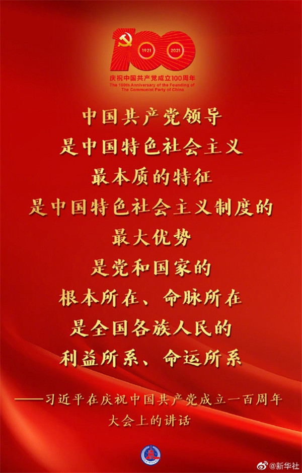7月1日,慶祝中國共產(chǎn)黨成立一百周年大會在北京隆重舉行,習(xí)近平總書記出席并發(fā)表重要講話??匆c↓