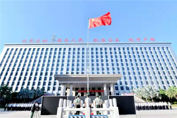 盛夏時節(jié),舉國同慶,神州大地,繁花似錦。7月1日上午,中國共產(chǎn)黨成立100周年當(dāng)天,海南省公安廳在廳機關(guān)大院舉行了隆重、神圣的升國旗儀式。在嘹亮的國歌聲中,廳機關(guān)和廳直屬單位民警在副省長、公安廳黨委書記、廳長閆希軍的帶領(lǐng)下整齊列隊,面向冉冉升起的五星紅旗莊嚴敬禮。