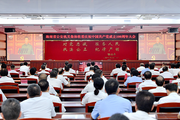 奮斗百年路,啟航新征程。7月1日上午8時(shí),慶祝中國共產(chǎn)黨成立100周年大會(huì)在北京天安門廣場隆重舉行。海南省公安機(jī)關(guān)在做好各項(xiàng)安保任務(wù)的同時(shí),組織民警集中收聽收看大會(huì)盛況。副省長、公安廳黨委書記、廳長閆希軍在省公安廳主會(huì)場收聽收看大會(huì)實(shí)況。