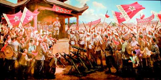 這是展示于龍州起義紀(jì)念館里的油畫(huà)。圖為1930年2月1日,龍州起義打響,1萬(wàn)多名軍民在龍州縣城新填地廣場(chǎng)集會(huì)。(龍州起義紀(jì)念館供圖)