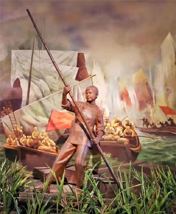 渡江戰(zhàn)役紀(jì)念館里以馬毛姐為原型設(shè)計的雕塑。(渡江戰(zhàn)役紀(jì)念館供圖)