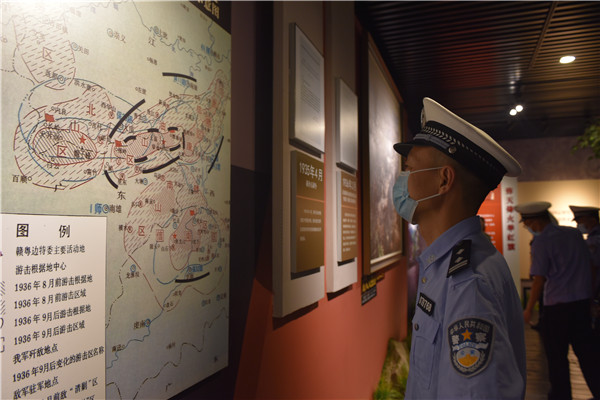 在大余梅嶺,民輔警代表參觀了陳毅紀念館,聆聽開國元勛們在艱苦卓絕斗爭條件下的感人故事,感受革命前輩勇往直前的斗志和視死如歸的氣魄。誦讀《梅嶺三章》,深切感受那激蕩天地的革命豪情以及堅貞不屈的人格力量。
