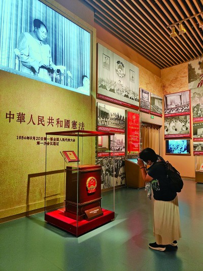 1949年9月21日,中國人民政治協(xié)商會議第一屆全體會議舉行,開啟了協(xié)商建國、共創(chuàng)偉業(yè)的新紀(jì)元。會議通過的《中國人民政治協(xié)商會議共同綱領(lǐng)》發(fā)揮了臨時憲法的作用。圖為觀眾在觀看政協(xié)會議有關(guān)介紹。
