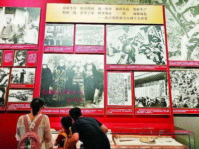 延安時期,黨在領(lǐng)導(dǎo)邊區(qū)法治建設(shè)的過程中,進行了歷史性探索?!蛾兏蕦庍厖^(qū)施政綱領(lǐng)》成為抗戰(zhàn)時期邊區(qū)的根本大法。“黃克功案件”的審判,彰顯了從嚴(yán)治黨、從嚴(yán)治軍的決心?!榜R錫五審判方式”的確立,為新民主主義司法制度注入了新鮮血液,也為新中國司法制度的建立提供了有益經(jīng)驗。圖為觀眾在參觀抗日根據(jù)地建設(shè)有關(guān)情況。
