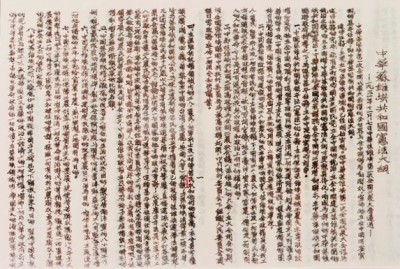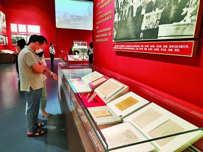 《中華蘇維埃共和國憲法大綱》是第一部由勞動人民制定的根本法,是共產(chǎn)黨領(lǐng)導(dǎo)人民反帝反封建的偉大綱領(lǐng),為以后制定民主憲法提供了寶貴經(jīng)驗。圖為展覽中的《中華蘇維埃共和國憲法大綱》文本。