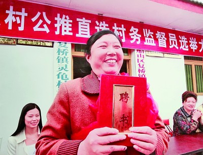 2010年3月,修改后的全國人大和地方各級人大選舉法規(guī)定,城鄉(xiāng)按相同人口比例選舉人大代表,基層群眾的民主意識得到進一步增強。圖為四川省遂寧市復(fù)橋鎮(zhèn)靈龜村舉行公推直選村務(wù)監(jiān)督員選舉活動。