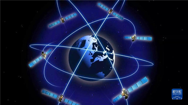 北斗全球組網(wǎng)示意圖(動畫演示)。新華社發(fā)