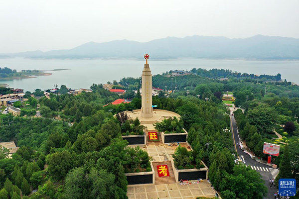 這是6月13日拍攝的河北省平山縣西柏坡紀念塔(無人機照片)。 新華社記者 牟宇 攝