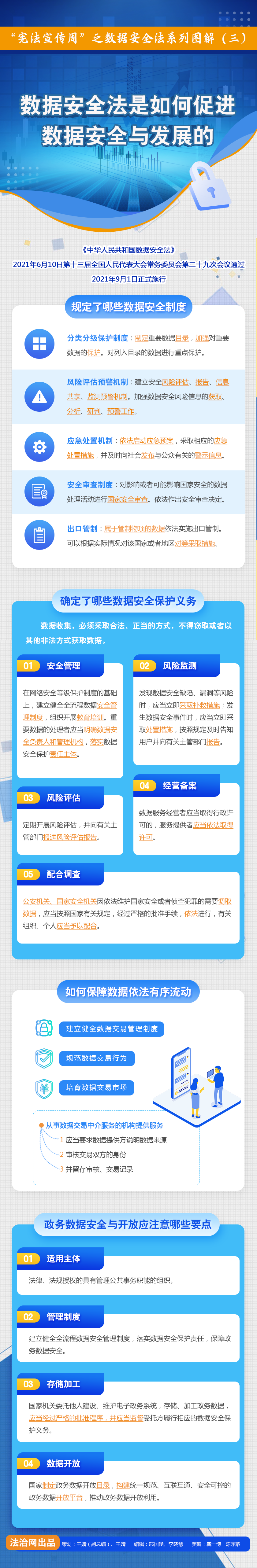 值此第四個(gè)“憲法宣傳周”之際,法治網(wǎng)將為您解讀今年9月1日起施行的《中華人民共和國(guó)數(shù)據(jù)安全法》——這部法律的亮點(diǎn)是什么?它是如何支持促進(jìn)數(shù)據(jù)安全與發(fā)展的?它又彰顯了哪些數(shù)據(jù)“溫度”?這一系列問題,都會(huì)在法治網(wǎng)《數(shù)據(jù)安全法圖解(系列)》中找到答案。