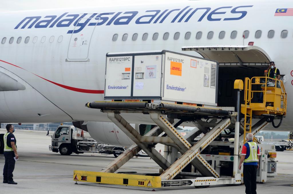 2021年8月20日,首批中國康希諾新冠疫苗運(yùn)抵馬來西亞吉隆坡國際機(jī)場。(新華社發(fā),馬來西亞科學(xué)、工藝和創(chuàng)新部供圖)