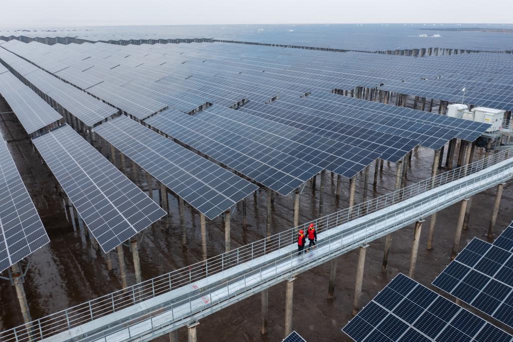 圖為2021年12月29日拍攝的浙江省寧波市象山縣長大涂灘涂光伏項(xiàng)目(無人機(jī)照片)。(新華社記者徐昱攝)