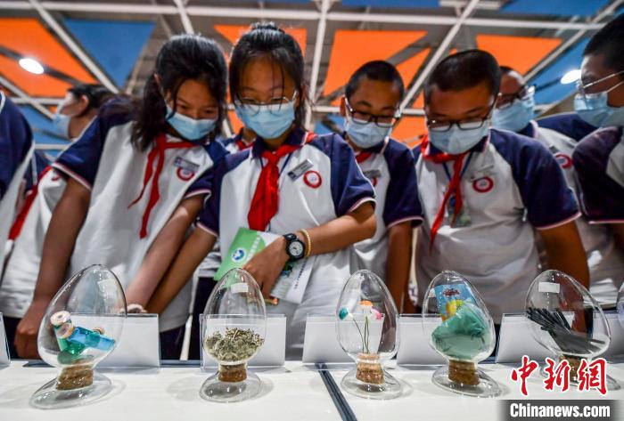 學(xué)生們觀看毒品模型,了解毒品的種類和形狀。 劉新 攝